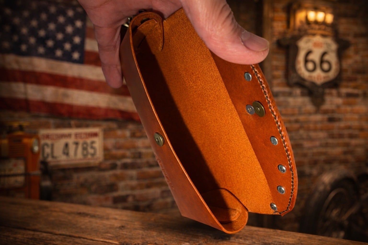 しっかり厚みのある革とマチ構造により、メガネを安全に収納。