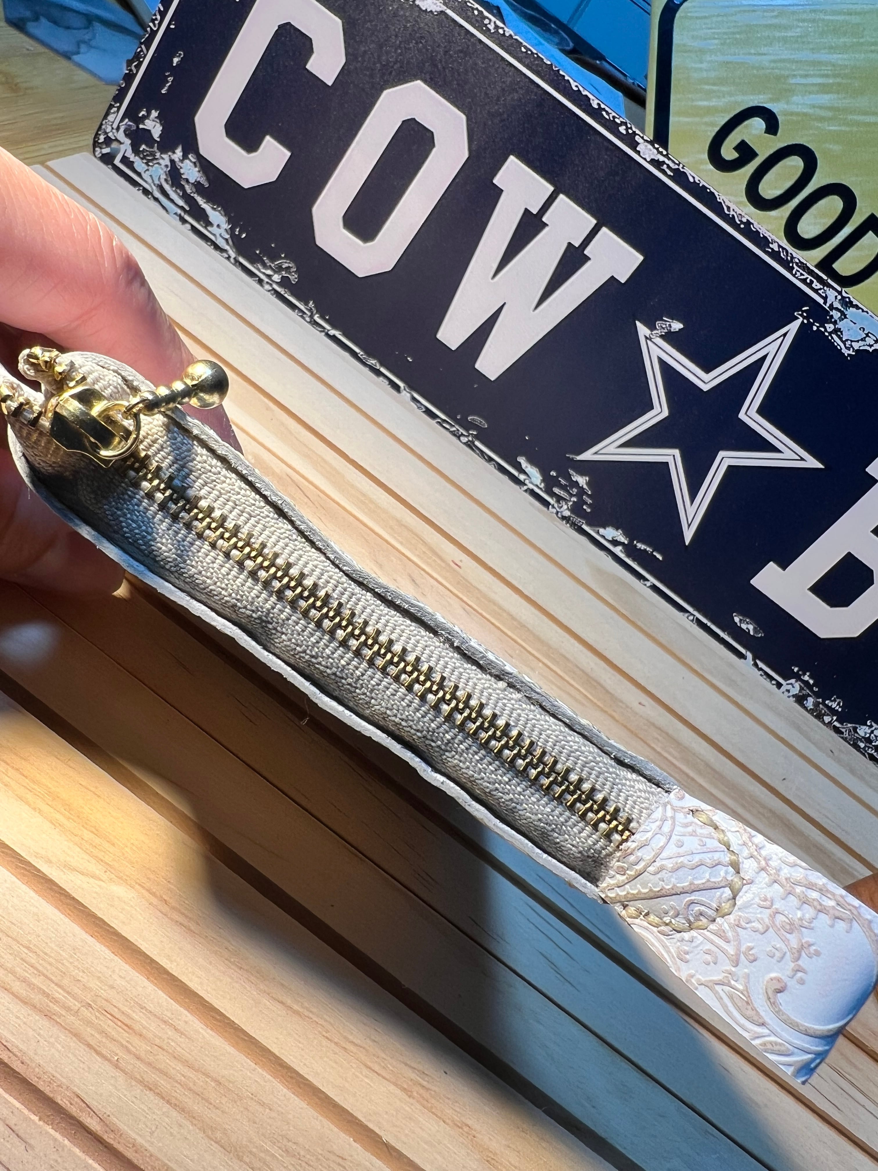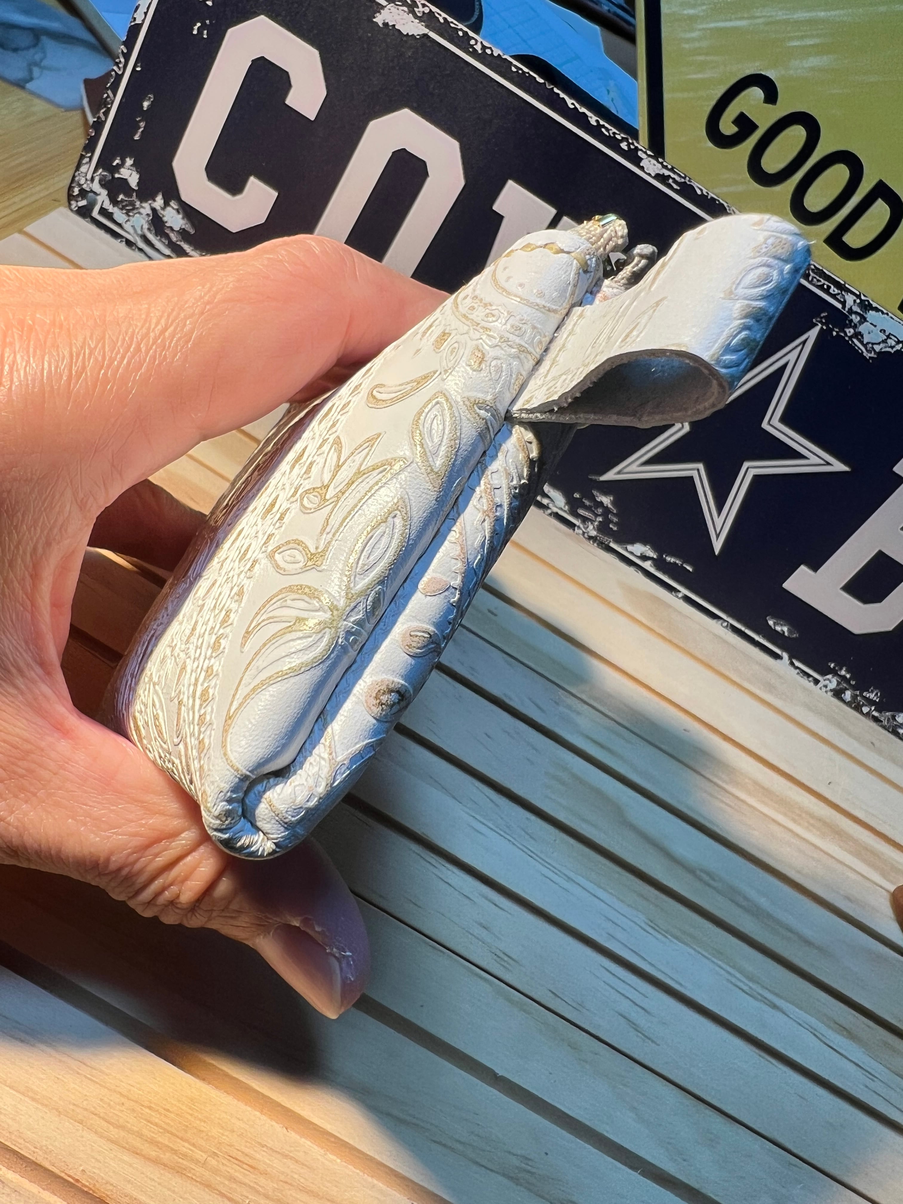 やわらかなホワイトレザーに、ふっくらとしたエンボス模様が施された