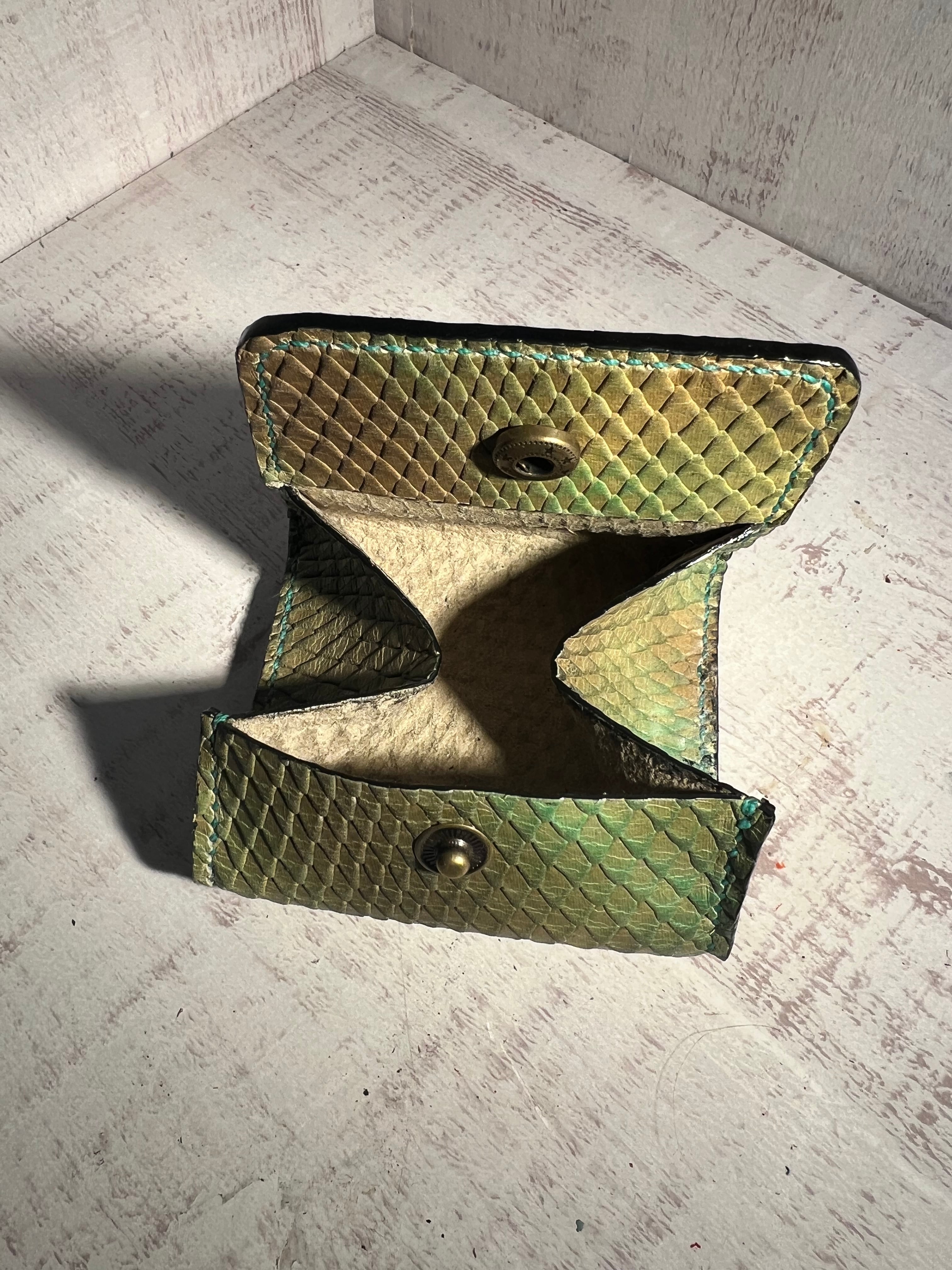 上質なパイソンレザーに、深みのあるグリーンのグラデーションを施した唯一無二の一品。